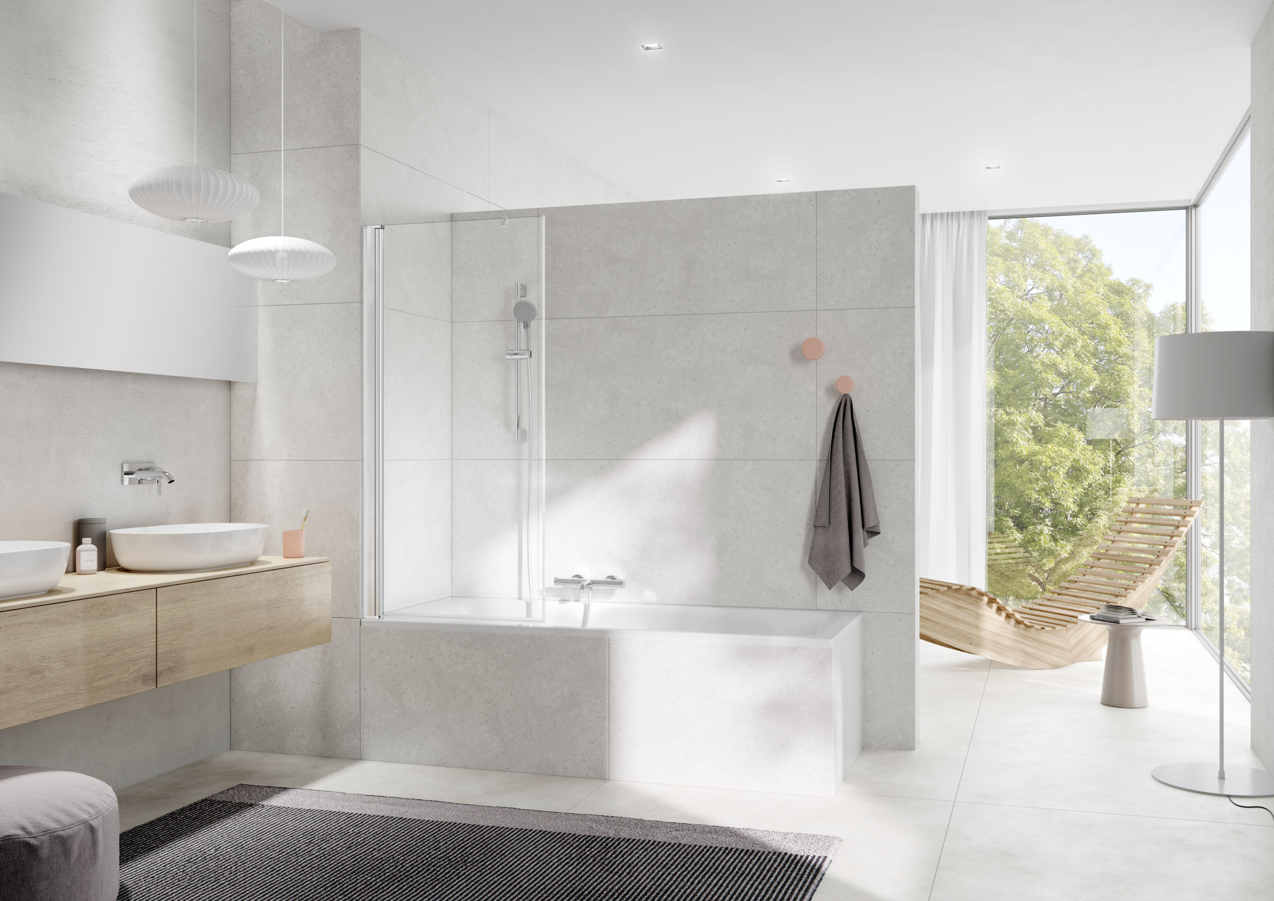 Mit den Lösungen von Kermi Duschdesign verwandeln Sie Ihre Badewanne im Handumdrehen in eine vollwertige Dusche. Da die Scheibe perfekt auf der Wanne aufsitzt, bleibt Spritzwasser genau da, wo es hingehört – in der Wanne. Ob Sie sich für eine maßgeschneiderte Lösung oder ein praktisches Serienmodell entscheiden: Kermi Duschdesign bietet vielfältige Optionen, die zu jedem Bad passen.